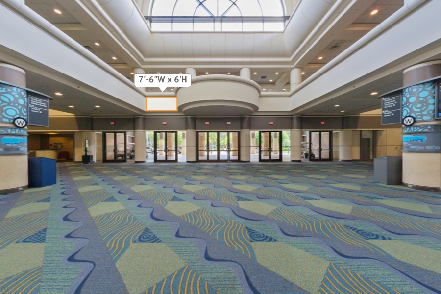 Every effort has been made to ensure the accuracy of all information contained on this photo. However, no warranties, either expressed or implied, are made with respect to this photo. If the location of building columns, utilities or other architectural components of the facility is a consideration in the construction or usage of a graphic element it is the sole responsibility of the client to physically inspect the facility to verify all dimensions and locations. It is the responsibility of the client to get written permission from the Center for any public concourse space to be utilized for sponsorships or advertising.