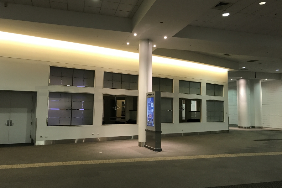 Every effort has been made to ensure the accuracy of all information contained on this photo. However, no warranties, either expressed or implied, are made with respect to this photo. If the location of building columns, utilities or other architectural components of the facility is a consideration in the construction or usage of a graphic element it is the sole responsibility of the client to physically inspect the facility to verify all dimensions and locations.