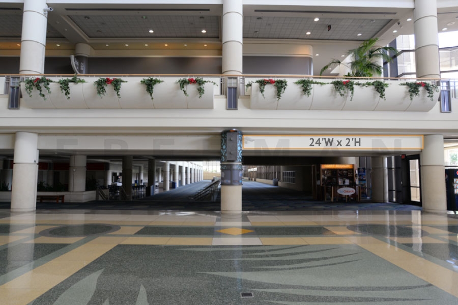 Every effort has been made to ensure the accuracy of all information contained on this photo. However, no warranties, either expressed or implied, are made with respect to this photo. If the location of building columns, utilities or other architectural components of the facility is a consideration in the construction or usage of a graphic element it is the sole responsibility of the client to physically inspect the facility to verify all dimensions and locations. It is the responsibility of the client to get written permission from the Center for any public concourse space to be utilized for sponsorships or advertising.