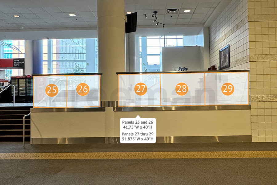 Every effort has been made to ensure the accuracy of all information contained on this photo. However, no warranties, either expressed or implied, are made with respect to this photo. If the location of building columns, utilities or other architectural components of the facility is a consideration in the construction or usage of a graphic element it is the sole responsibility of the client to physically inspect the facility to verify all dimensions and locations.