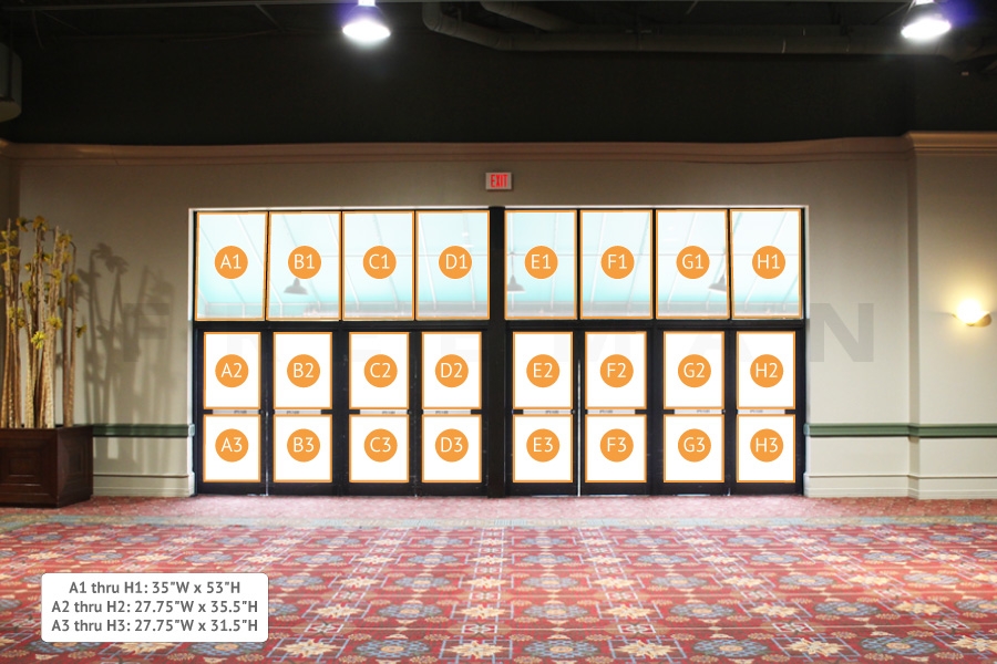 Every effort has been made to ensure the accuracy of all information contained on this photo. However, no warranties, either expressed or implied, are made with respect to this photo. If the location of building columns, utilities or other architectural components of the facility is a consideration in the construction or usage of a graphic element it is the sole responsibility of the client to physically inspect the facility to verify all dimensions and locations.