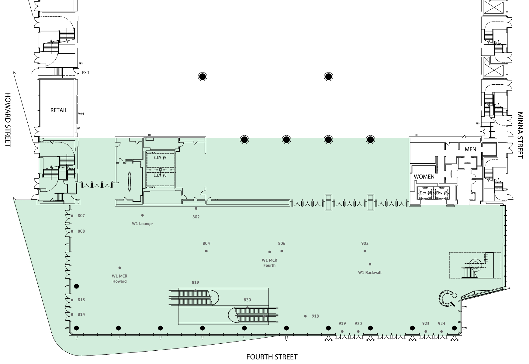 Section: Meterboards, Cubes, Rotating Kiosk - West Building Level 1 Howard Street Side