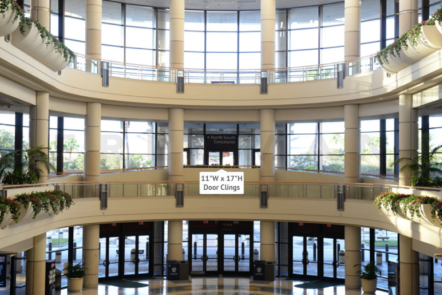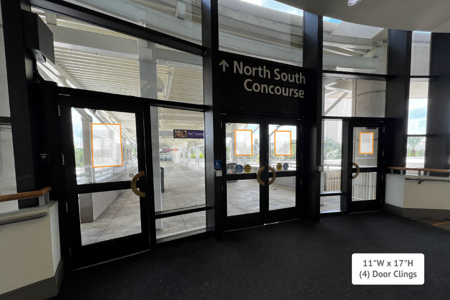 In facing graphics only. ATS will have placement on exterior of building. Advertising placement includes 11 in. X 17 in. graphic placed above door handle on all doors with the exception of the handicap door set when not permitted.
