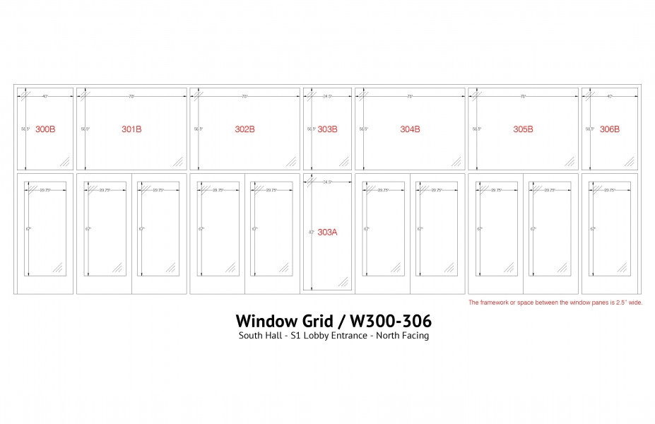 Window 300-306 - South Hall - S1 Lobby Entrance - North Facing