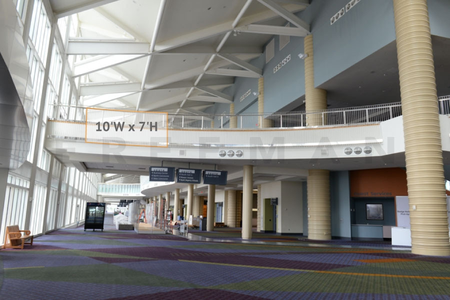 Every effort has been made to ensure the accuracy of all information contained on this photo. However, no warranties, either expressed or implied, are made with respect to this photo. If the location of building columns, utilities or other architectural components of the facility is a consideration in the construction or usage of a graphic element it is the sole responsibility of the client to physically inspect the facility to verify all dimensions and locations. It is the responsibility of the client to get written permission from the Center for any public concourse space to be utilized for sponsorships or advertising.