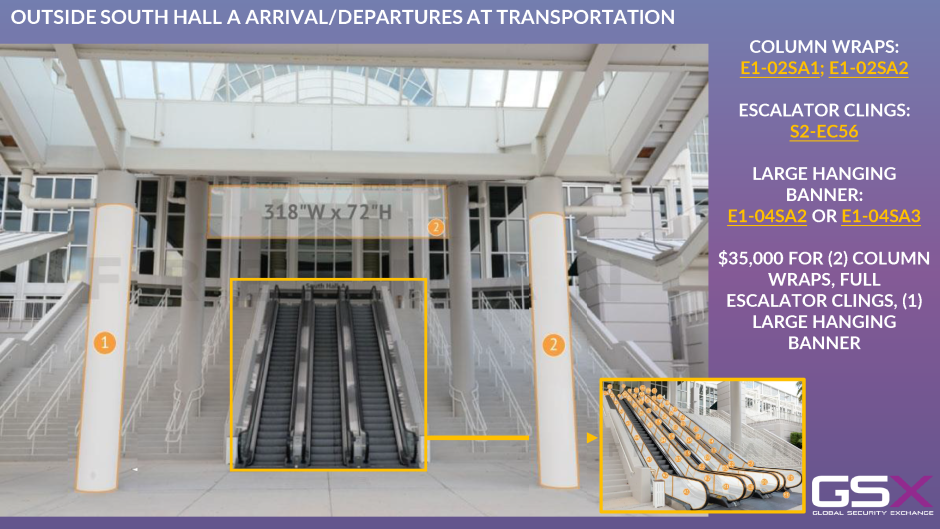 2 COLUMN WRAPS, FULL ESCALATOR CLINGS, 1 LARGE HANGING BANNER