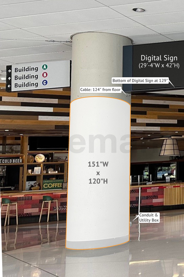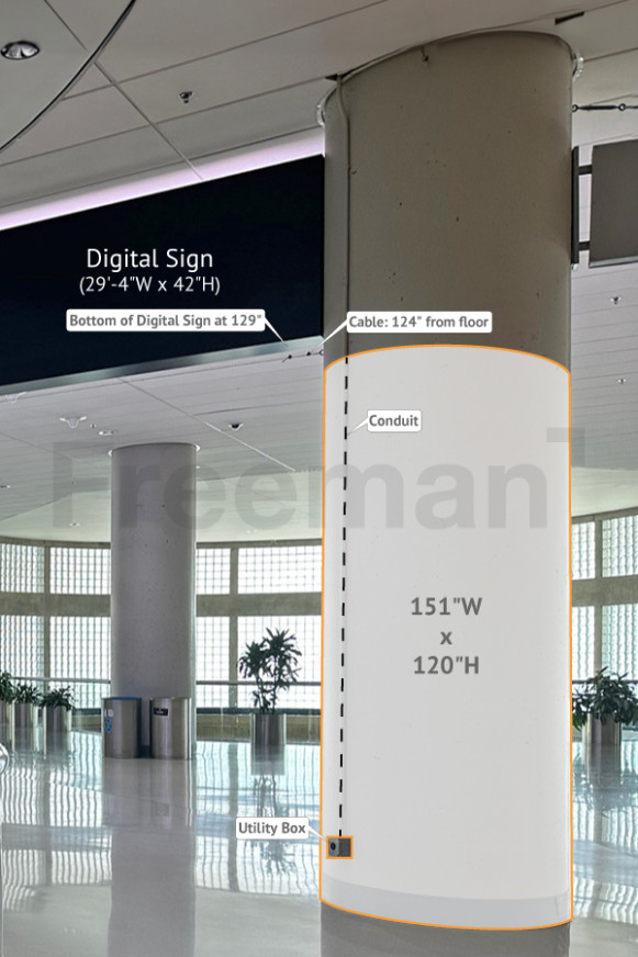 Every effort has been made to ensure the accuracy of all information contained on this photo. However, no warranties, either expressed or implied, are made with respect to this photo. If the location of building columns, utilities or other architectural components of the facility is a consideration in the construction or usage of a graphic element it is the sole responsibility of the client to physically inspect the facility to verify all dimensions and locations.