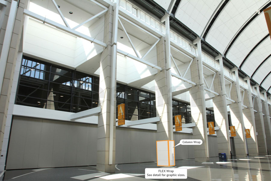 Every effort has been made to ensure the accuracy of all information contained on this photo. However, no warranties, either expressed or implied, are made with respect to this photo. If the location of building columns, utilities or other architectural components of the facility is a consideration in the construction or usage of a graphic element it is the sole responsibility of the client to physically inspect the facility to verify all dimensions and locations.