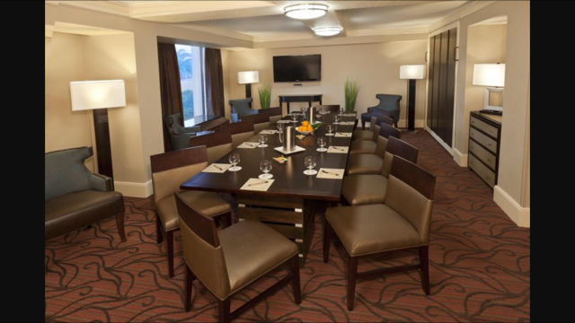 Rooms is set as conference style for 12, bar area, restroom, built in monitor to plug in laptop
