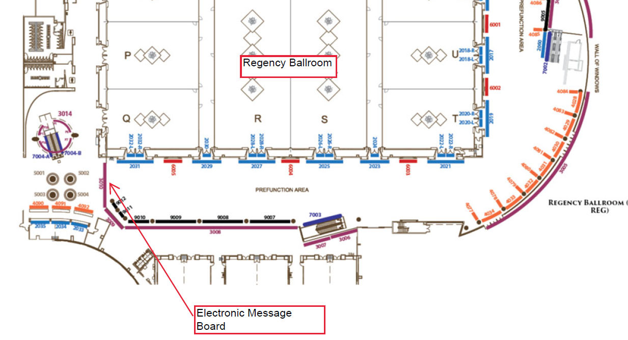 Every effort has been made to ensure the accuracy of all information contained on this photo. However, no warranties, either expressed or implied, are made with respect to this photo. If the location of building columns, utilities or other architectural components of the facility is a consideration in the construction or usage of a graphic element it is the sole responsibility of the client to physically inspect the facility to verify all dimensions and locations. It is the responsibility of the client to get written permission from the Center for any public concourse space to be utilized for sponsorships or advertising.