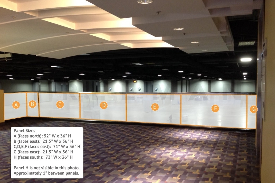 Every effort has been made to ensure the accuracy of all information contained on this photo. However, no warranties, either expressed or implied, are made with respect to this photo. If the location of building columns, utilities or other architectural components of the facility is a consideration in the construction or usage of a graphic element it is the sole responsibility of the client to physically inspect the facility to verify all dimensions and locations.