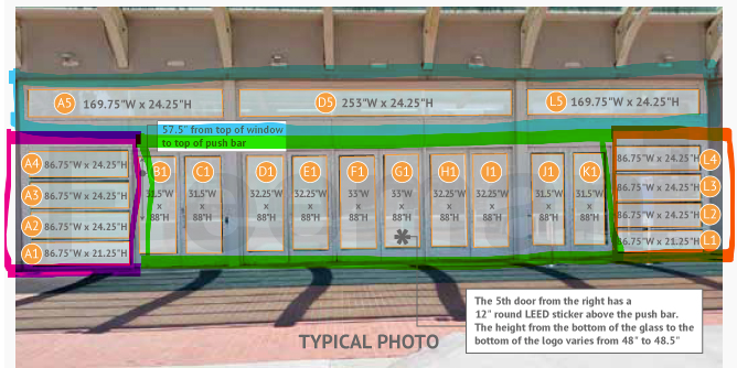 Every effort has been made to ensure the accuracy of all information contained on this photo. However, no warranties, either expressed or implied, are made with respect to this photo. If the location of building columns, utilities or other architectural components of the facility is a consideration in the construction or usage of a graphic element it is the sole responsibility of the client to physically inspect the facility to verify all dimensions and locations.