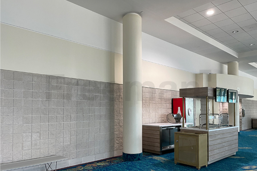 Every effort has been made to ensure the accuracy of all information contained on this photo. However, no warranties, either expressed or implied, are made with respect to this photo. If the location of building columns, utilities or other architectural components of the facility is a consideration in the construction or usage of a graphic element it is the sole responsibility of the client to physically inspect the facility to verify all dimensions and locations.