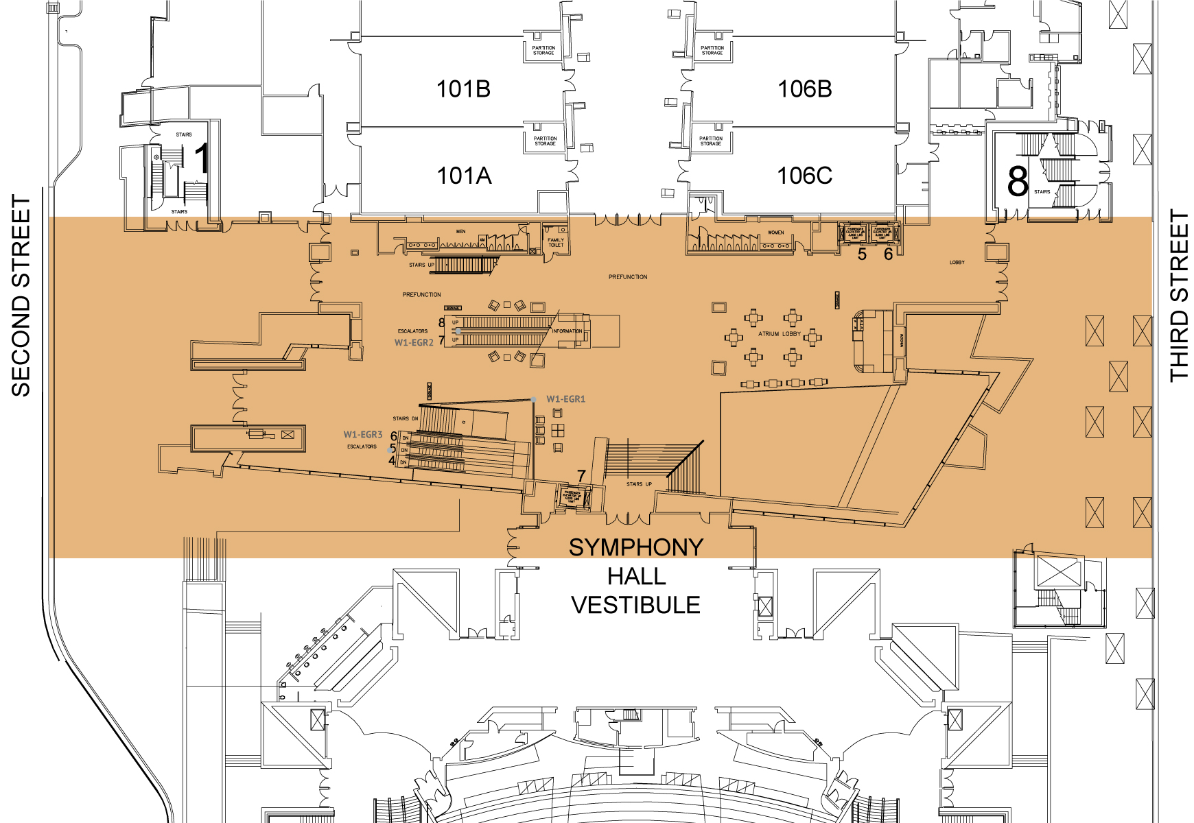 Section: Escalator Surround Glass Railings W1-EGR1