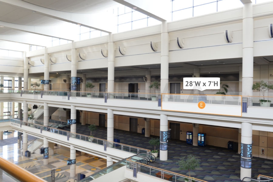 Every effort has been made to ensure the accuracy of all information contained on this photo. However, no warranties, either expressed or implied, are made with respect to this photo. If the location of building columns, utilities or other architectural components of the facility is a consideration in the construction or usage of a graphic element it is the sole responsibility of the client to physically inspect the facility to verify all dimensions and locations. It is the responsibility of the client to get written permission from the Center for any public concourse space to be utilized for sponsorships or advertising.