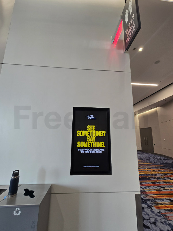 LVCC does not allow clings or boards to cover the building signage outside rooms and in halls.