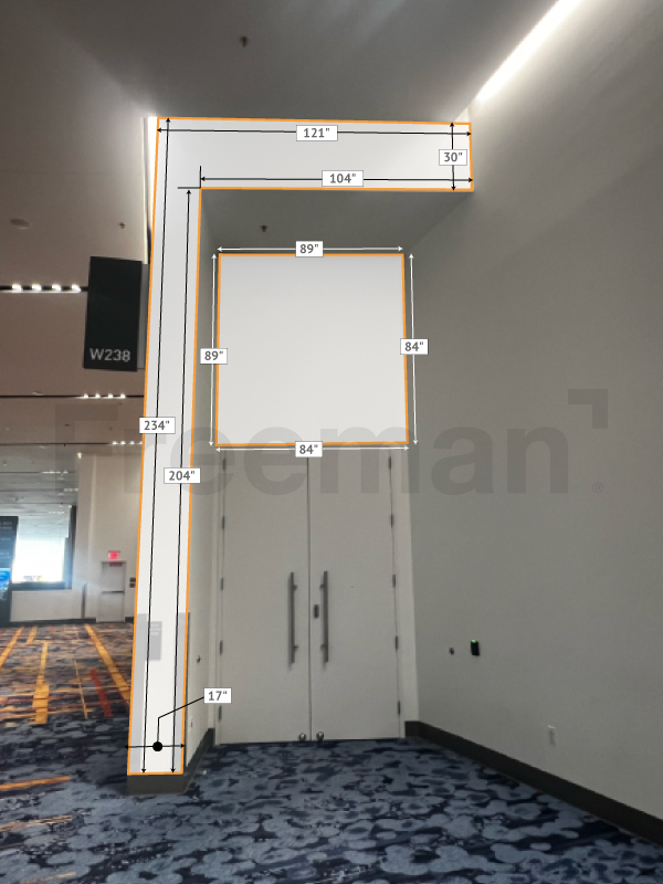 Every effort has been made to ensure the accuracy of all information contained on this photo. However, no warranties, either expressed or implied, are made with respect to this photo. If the location of building columns, utilities or other architectural components of the facility is a consideration in the construction or usage of a graphic element it is the sole responsibility of the client to physically inspect the facility to verify all dimensions and locations.