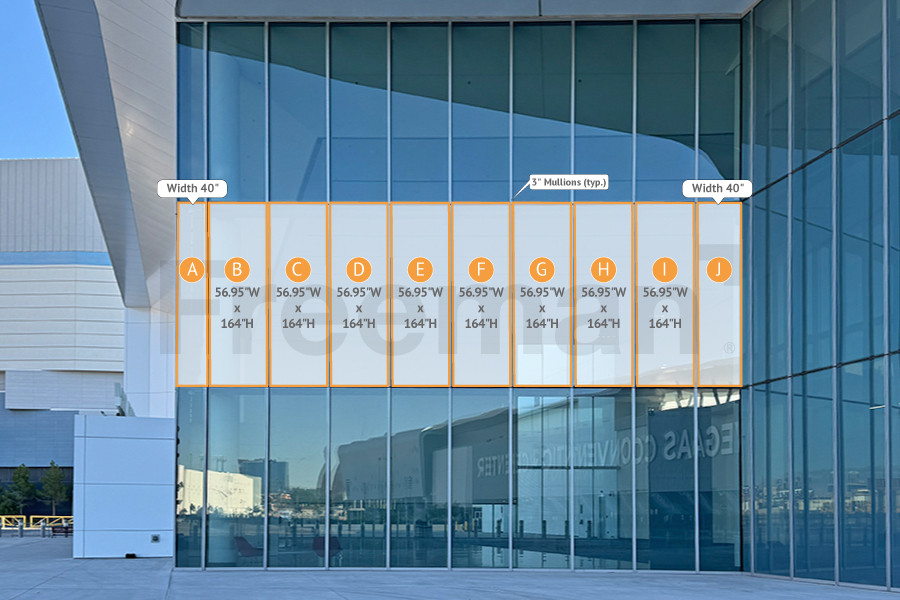 Every effort has been made to ensure the accuracy of all information contained on this photo. However, no warranties, either expressed or implied, are made with respect to this photo. If the location of building columns, utilities or other architectural components of the facility is a consideration in the construction or usage of a graphic element it is the sole responsibility of the client to physically inspect the facility to verify all dimensions and locations.