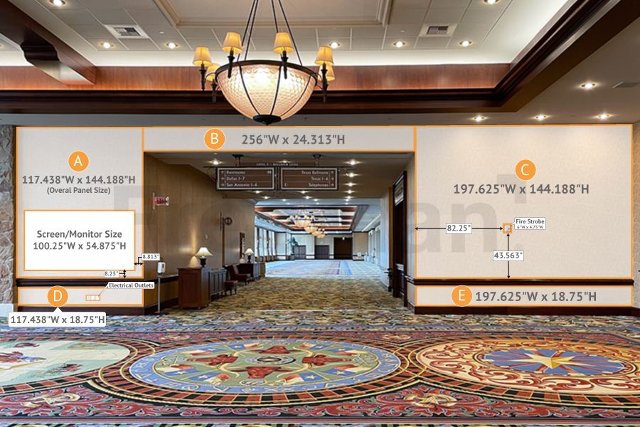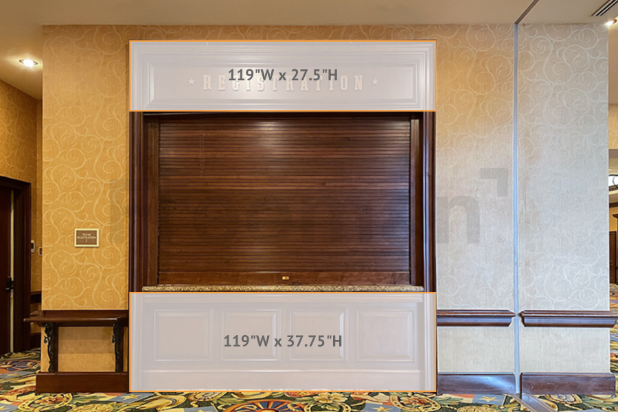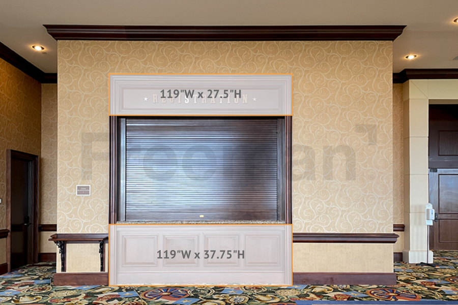 Size: Header: 119"W x 27.5"H, Kick Panel: 119"W x 37.75"H