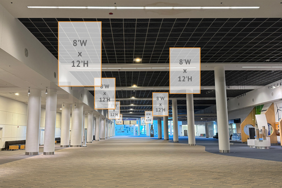 Every effort has been made to ensure the accuracy of all information contained on this photo. However, no warranties, either expressed or implied, are made with respect to this photo. If the location of building columns, utilities or other architectural components of the facility is a consideration in the construction or usage of a graphic element it is the sole responsibility of the client to physically inspect the facility to verify all dimensions and locations.