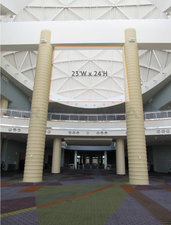 Every effort has been made to ensure the accuracy of all information contained on this photo. However, no warranties, either expressed or implied, are made with respect to this photo. If the location of building columns, utilities or other architectural components of the facility is a consideration in the construction or usage of a graphic element it is the sole responsibility of the client to physically inspect the facility to verify all dimensions and locations. It is the responsibility of the client to get written permission from the Center for any public concourse space to be utilized for sponsorships or advertising.