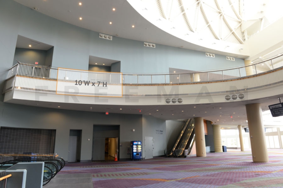 Every effort has been made to ensure the accuracy of all information contained on this photo. However, no warranties, either expressed or implied, are made with respect to this photo. If the location of building columns, utilities or other architectural components of the facility is a consideration in the construction or usage of a graphic element it is the sole responsibility of the client to physically inspect the facility to verify all dimensions and locations. It is the responsibility of the client to get written permission from the Center for any public concourse space to be utilized for sponsorships or advertising.