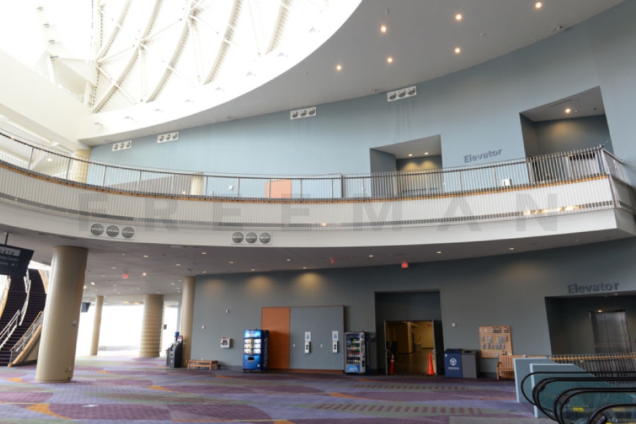 Every effort has been made to ensure the accuracy of all information contained on this photo. However, no warranties, either expressed or implied, are made with respect to this photo. If the location of building columns, utilities or other architectural components of the facility is a consideration in the construction or usage of a graphic element it is the sole responsibility of the client to physically inspect the facility to verify all dimensions and locations. It is the responsibility of the client to get written permission from the Center for any public concourse space to be utilized for sponsorships or advertising.