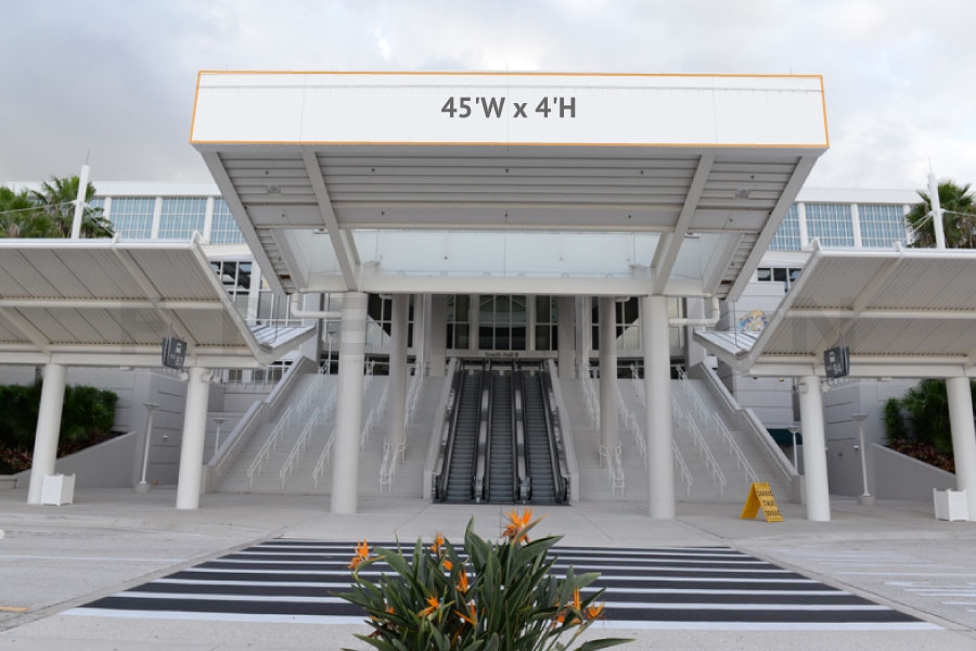 Every effort has been made to ensure the accuracy of all information contained on this photo. However, no warranties, either expressed or implied, are made with respect to this photo. If the location of building columns, utilities or other architectural components of the facility is a consideration in the construction or usage of a graphic element it is the sole responsibility of the client to physically inspect the facility to verify all dimensions and locations. It is the responsibility of the client to get written permission from the Center for any public concourse space to be utilized for sponsorships or advertising.