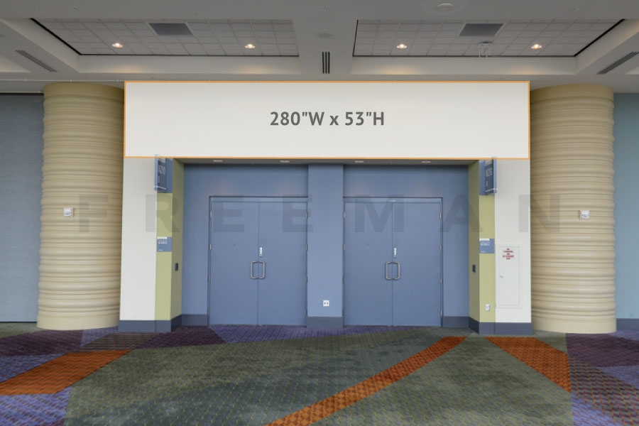 Every effort has been made to ensure the accuracy of all information contained on this photo. However, no warranties, either expressed or implied, are made with respect to this photo. If the location of building columns, utilities or other architectural components of the facility is a consideration in the construction or usage of a graphic element it is the sole responsibility of the client to physically inspect the facility to verify all dimensions and locations. It is the responsibility of the client to get written permission from the Center for any public concourse space to be utilized for sponsorships or advertising.
