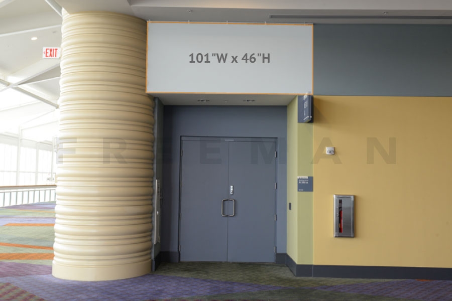 Every effort has been made to ensure the accuracy of all information contained on this photo. However, no warranties, either expressed or implied, are made with respect to this photo. If the location of building columns, utilities or other architectural components of the facility is a consideration in the construction or usage of a graphic element it is the sole responsibility of the client to physically inspect the facility to verify all dimensions and locations. It is the responsibility of the client to get written permission from the Center for any public concourse space to be utilized for sponsorships or advertising.