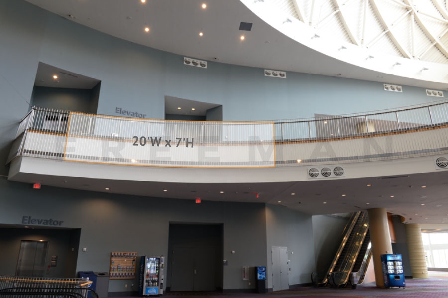 Every effort has been made to ensure the accuracy of all information contained on this photo. However, no warranties, either expressed or implied, are made with respect to this photo. If the location of building columns, utilities or other architectural components of the facility is a consideration in the construction or usage of a graphic element it is the sole responsibility of the client to physically inspect the facility to verify all dimensions and locations. It is the responsibility of the client to get written permission from the Center for any public concourse space to be utilized for sponsorships or advertising.