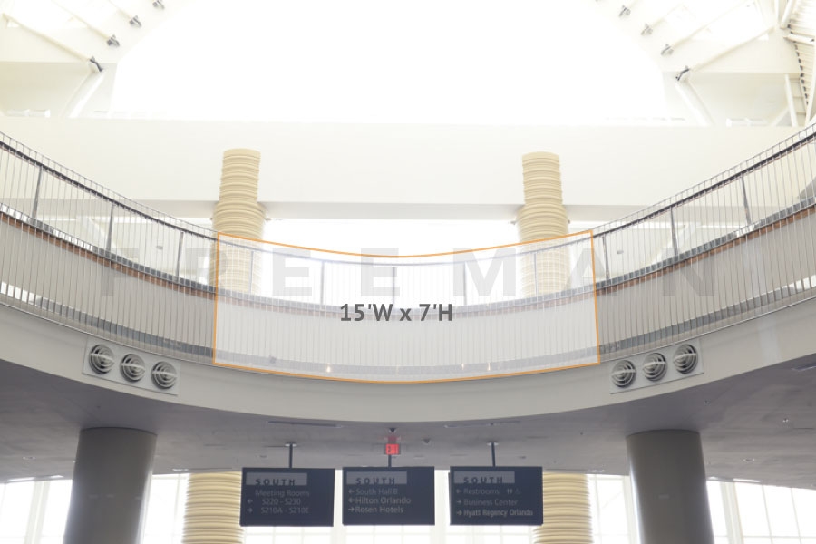 Every effort has been made to ensure the accuracy of all information contained on this photo. However, no warranties, either expressed or implied, are made with respect to this photo. If the location of building columns, utilities or other architectural components of the facility is a consideration in the construction or usage of a graphic element it is the sole responsibility of the client to physically inspect the facility to verify all dimensions and locations. It is the responsibility of the client to get written permission from the Center for any public concourse space to be utilized for sponsorships or advertising.