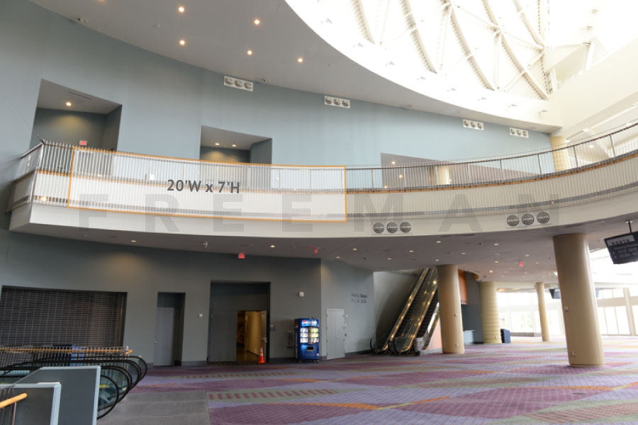 Every effort has been made to ensure the accuracy of all information contained on this photo. However, no warranties, either expressed or implied, are made with respect to this photo. If the location of building columns, utilities or other architectural components of the facility is a consideration in the construction or usage of a graphic element it is the sole responsibility of the client to physically inspect the facility to verify all dimensions and locations. It is the responsibility of the client to get written permission from the Center for any public concourse space to be utilized for sponsorships or advertising.