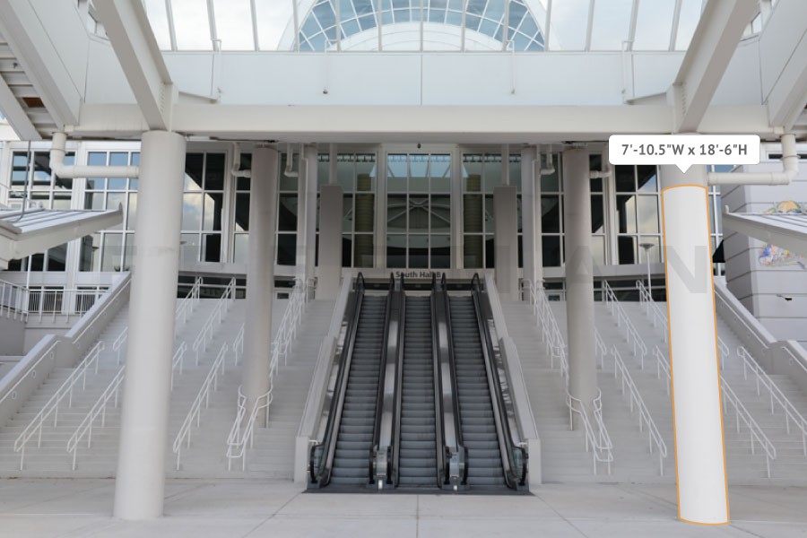 Every effort has been made to ensure the accuracy of all information contained on this photo. However, no warranties, either expressed or implied, are made with respect to this photo. If the location of building columns, utilities or other architectural components of the facility is a consideration in the construction or usage of a graphic element it is the sole responsibility of the client to physically inspect the facility to verify all dimensions and locations. It is the responsibility of the client to get written permission from the Center for any public concourse space to be utilized for sponsorships or advertising.
