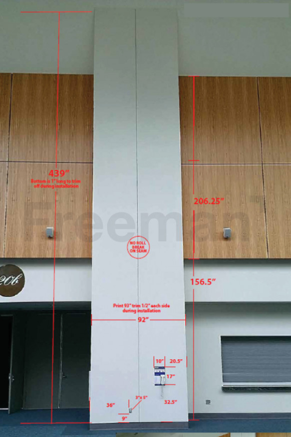 Every effort has been made to ensure the accuracy of all information contained on this photo. However, no warranties, either expressed or implied, are made with respect to this photo. If the location of building columns, utilities or other architectural components of the facility is a consideration in the construction or usage of a graphic element it is the sole responsibility of the client to physically inspect the facility to verify all dimensions and locations.